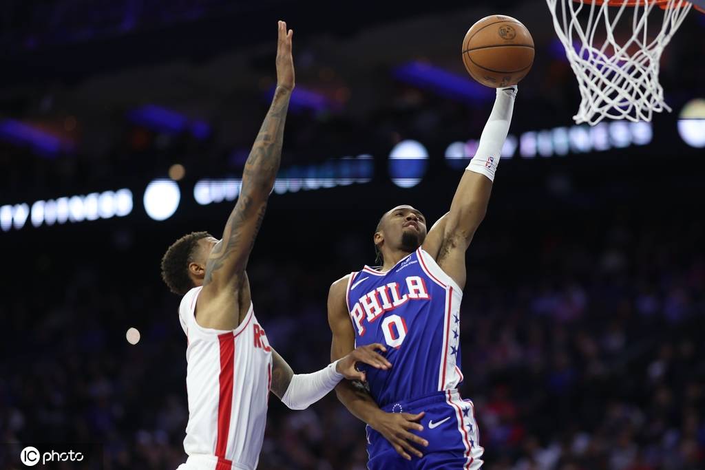 76人队首发:泰瑞斯-马克西、乔尔-恩比德、凯利-乌布雷、保罗-乔治、VJ-埃奇库姆